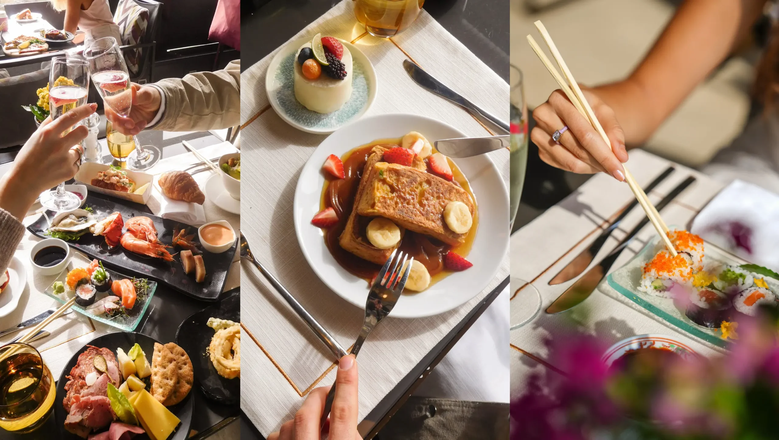 Türk damak tadına uygun olarak hazırlanmış geleneksel lezzetlerin yanı sıra özellikle sokak lezzetleri, makarna istasyonu, lobster bun, piliç çevirme istasyonu, pizza, pide, steak tartar, Türk ve Fransız tatlıları, Parmesan tekerleğinde makarna gibi seçkin tatlar brunch deneyiminin merkezinde yer alıyor. Aynı zamanda tüm konuklara prosecco ya da Fiero Spritz, Pink Amber ve Coffee Negroni ((Soğuk filtre kahve ile demlenmiş Negroni) kokteyl seçeneklerinden biri Sabrosa’da kahvaltı keyfini ikiye katlıyor.
